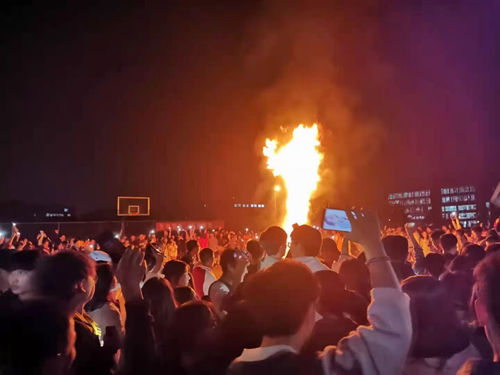 文艺表演后,是期待已久的篝火晚会,几千名师生手拉手围成一圈又一圈,和着歌声绕着篝火跳舞,在温暖的火光中,大家其乐融融,欢声笑语,载歌载舞。伴着烤土豆的香味、闪耀的篝火、浓浓的夜色以及充满民族特色的歌声,大家热情高涨,尽兴而归。到场彝族学生纷纷表示:“离家在外很是想家,能在学校参加和家乡一样热闹的篝火晚会,冲淡了想家的思绪,感受了过年的欢乐氛围,好温暖。“