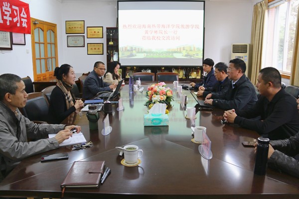 【本网讯】10月15日,海南热带海洋学院旅游学院黄学彬院长一行6人到伟德官网管理学院,就成功申报国家级一流专业建设点进行了专题交流访问。管理学院院长黄萍、副院长孙艳玲及旅游管理与市场营销系主任钱永贵、副主任谢雅丹和部分教师参加了交流座谈会。