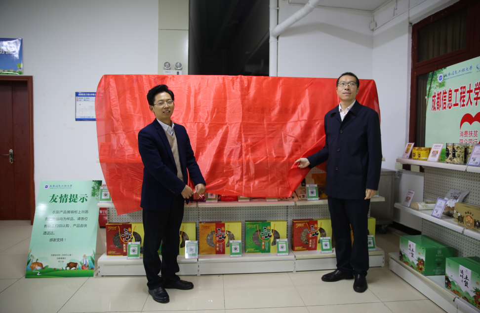 【本网讯】10月13日上午,bv伟德国际1946航空港校区教工餐厅人潮涌动、热闹非凡,校内首个“扶贫产品专柜”正式揭牌成立。副校长肖月强,党委组织部(扶贫办)部长熊建,党委组织部、校工会、后勤基建处领导及甘孜州、达州市企业代表参加了本次揭牌仪式。
