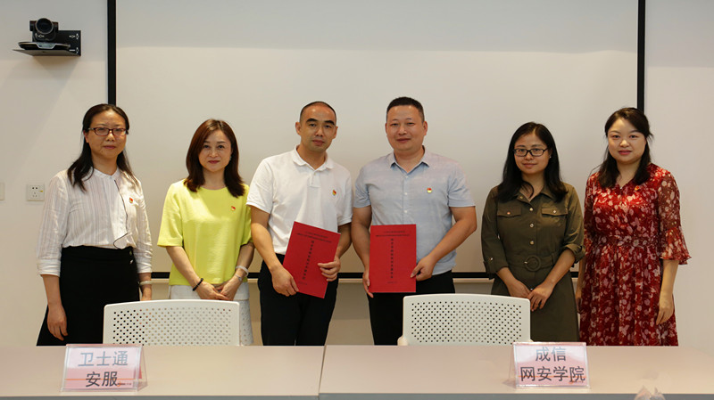 参观结束后,全体同学在卫士通会议室参加了bv伟德国际1946网络空间安全学院研究生党支部与卫士通安服事业部党支部结对共建签约仪式和交流座谈。签约仪式前,卫士通总经理助理陈澜女士代表公司致欢迎辞并介绍卫士通企业的概况,她表示,企业发展的一个重要途径就是校企联合,期望在党建、技术、育人、招聘等方面与成信大网络空间安全学院进行深入合作,实现校企双赢。随后,林细俤和李雅静也分别做了发言。林细俤与卫士通安服事业部党支部书记叶定松分别代表校企双方签订了党支部结对共建协议书并合影留念。