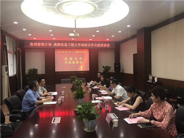 交流座谈会上,于世祥副校长对刘旭一行的到来表示热烈欢迎,希望双方认真梳理合作内容,创新合作渠道,把合作不仅停留在战略层面,更要落到实处。刘旭在讲话中表示:贵州省统计局非常重视双方的合作,希望进一步深入沟通,探寻合作机制,从贵州省统计局的业务需求出发,发挥学校科研特长,特别是在大数据、空间信息科学及统计学方面着力开展合作,创新统计培训体系,提高业务信息化水平,改善基层基础,提高分析研究水平。