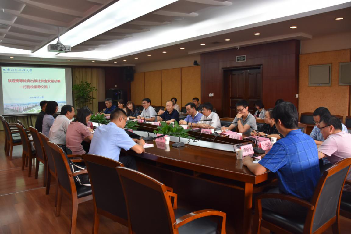 何建新对林金安一行表示热烈欢迎,并简要介绍了学校办学历史、发展思路、学科建设和人才培养等方面基本情况。他谈到,学校发起并加入CDIO工程教育联盟,重视工程教育改革的探索与实践,形成了丰富改革成果与经验,并已在高等教育出版社支持下出版发行了系列教材。他表示,很期待双方进一步深化合作,在新工科背景下共同推进新时代的教材改革与建设。