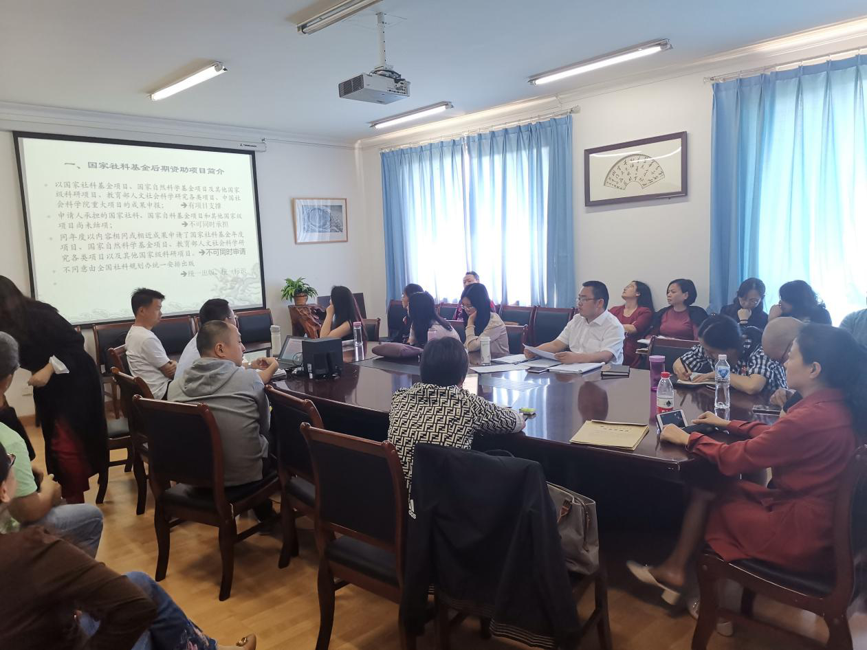 【本网讯】5月13日,文化艺术学院邀请四川师范大学马克思主义学院副教授、硕士生导师雷勇在龙泉校区第二行政楼四楼会议室进行了国家社科基金后期协助项目申报讲座。会议由文化艺术学院党委书记刘敦虎主持,学院全体教师参加了此次讲座。