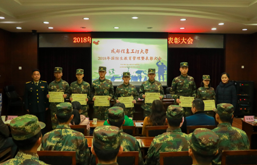 【本网讯】12月13日下午,学校在行政楼一会议室举行2018年度国防生教育管理总结暨表彰大会。火箭军驻校选培办王主任,学生工作处、大气科学学院、资源环境学院,网络空间安全学院相关领导,火箭军驻校选培办干事,学生工作处老师及全体在校国防生参加了会议。会议由驻校选培办邵干事主持。