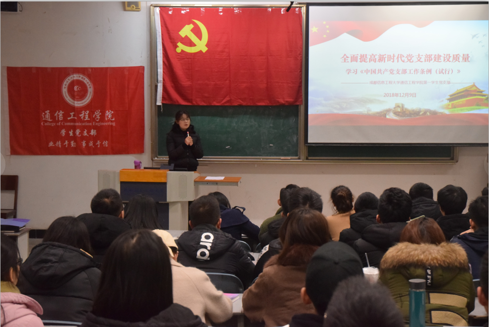 王燕以通信工程学院第一学生党支部入选“全国党建工作样板支部”为契机,开展了“全面提高新时代党支部建设质量”为主题的学习活动。她从党支部设立过程、主要职责、开展组织生活会的内容以及支部委员会的构成和形成过程等方面和大家进行了交流学习。她说,通信工程学院学生党支部应该以此为契机,全面提高新时代党支部建设质量为标准开展各项工作,学生党员要继续创先争优,注重自身素质的培养,保证党支部的纯洁性和先进性,更应铭记历史,继承发扬爱国主义精神,勇担新时代建设祖国重任。