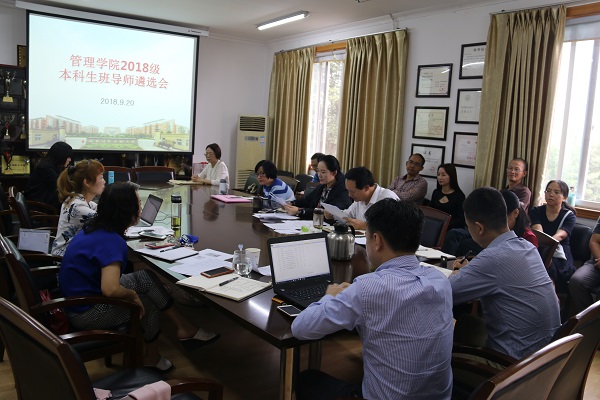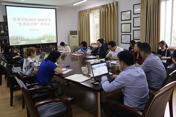 【本网讯】为了深入贯彻落实《中共bv伟德国际1946委员会关于加强和改进新形势下高校思想政治工作的实施意见》和《bv伟德国际1946本科生班导师制实施办法》等文件精神,进一步强化班导师队伍建设,整体提升班导师队伍工作能力和水平,促进和完善班导师工作制度,调动班导师工作的主动性、积极性和创造性,9月20日上午,管理学院召开了班导师工作会议,评选2017-2018学年本科生“优秀班导师”,审议确定2018级新生班导师。学院党总支书记王子华、院长黄萍及班导师工作领导小组全体成员、全体辅导员参加了会议。