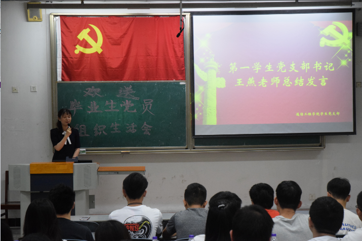 【本网讯】通信工程学院2018届党员毕业生即将告别母校,走向人生另一个新的开始,值此特别时刻,通信工程学院学生党支部积极响应学院相关文件精神,于6月7日在1107教室开展了毕业生党员“五个一”主题教育活动,第一学生党支部书记王燕全程指导,学生党员高度参与,效果明显。