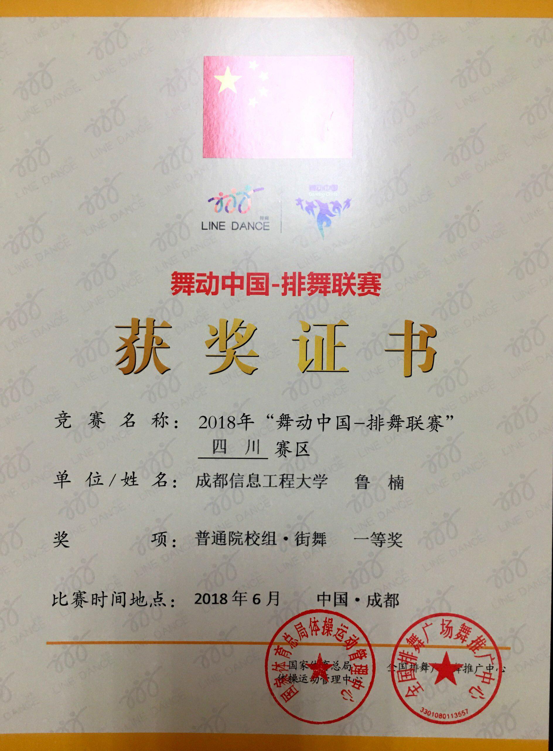 此次比赛共有来自全省各地市州的90个单位149支代表队,共2500余名运动员参赛。经过激烈角逐,伟德官网大学生艺术团DC街舞队通过优异的表现、精湛的表演,凭借舞蹈作品《舞动成信》,荣获“2018年舞动中国-排舞联赛 (四川赛区)暨第三届四川省学生排舞比赛”普通院校组街舞自编项目的一等奖。