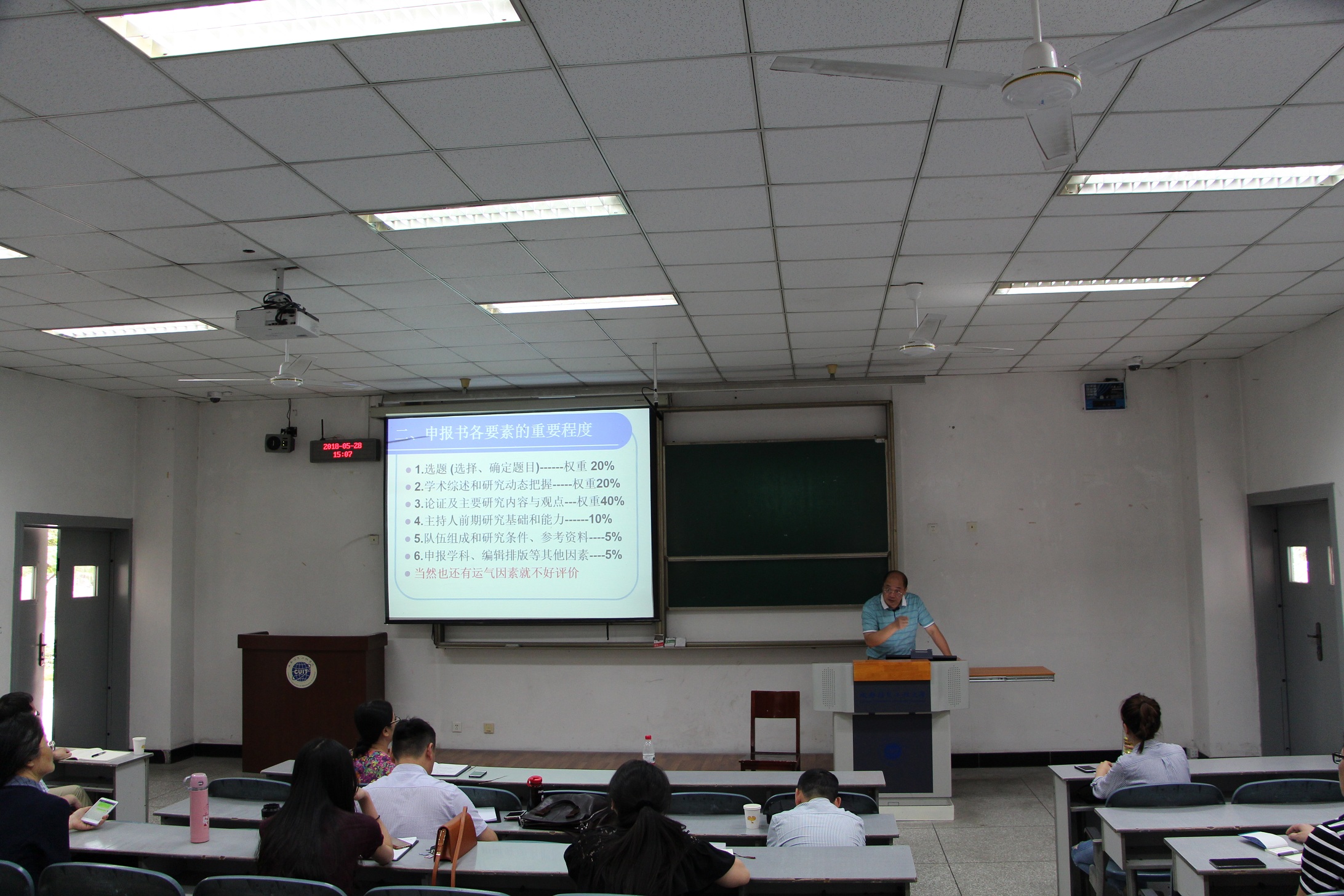 【本网讯】5月28日下午,马克思主义学院邀请湖南科技大学马克思主义学院二级教授、博士生导师罗建文为我院教师作了主题为“高级别科研项目的申报和培育”的学术报告。报告由马克思主义学院院长戴丽红主持,马克思主义学院全体无课老师以及学校其它相关教师聆听了讲座。