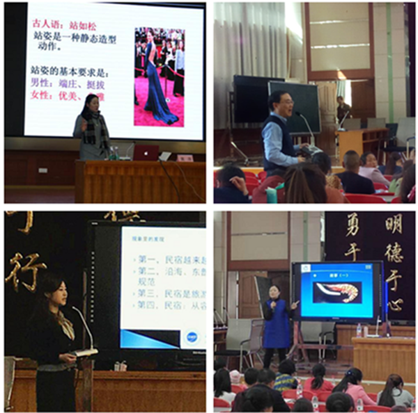 黄萍为培训学员讲授了“乡村旅游社区的现代礼仪”。她从什么是乡村旅游,乡村旅游的发展,如何打造乡村旅游会客厅等方面深入浅出的为学员阐释了什么是乡村旅游社区礼仪,从站、坐、行、手势、仪态仪表等方面讲解了乡村旅游服务中的个人礼仪,并进行了现场礼仪示范。