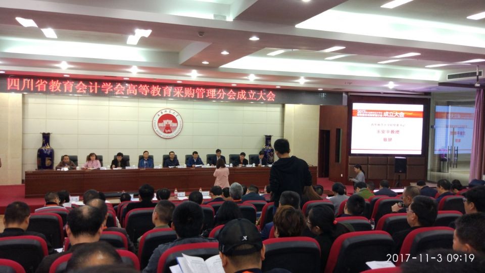 【本网讯】11月3至4日,由四川省教育会计学会主办、西华师范大学承办的四川省教育会计学会高等教育采购管理分会(以下简称采购分会)成立大会在西华师范大学华凤校区举行。西华师范大学党委书记王安平,中山大学政府采购与招投标管理中心主任贾延江,四川省教育厅财务管理处处长王羽,北京师范大学财经处处长陆兆老参加会议并作了重要发言。省内共51所高校政府采购主管人员参加会议,伟德官网资产管理处相关人员也参加了本次大会。