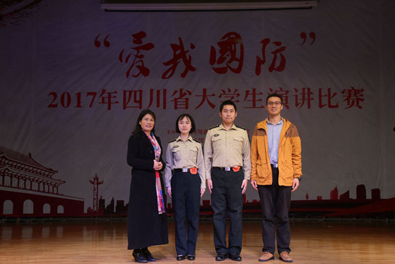11月1日,四川省 “爱我国防”大学生演讲比赛决赛在成都师范学院举行。学生工作处精心组织,专门安排资源环境学院党总支书记李蕖和驻校选培办邵干事带队参加决赛,两位老师对两位同学的演讲内容、演讲技巧、仪表风范等方面进行了悉心指导,确保了参赛的顺利圆满。伟德官网两名国防生邹馥蔚和罗京圣代表学校参加四川省决赛。国防生邹馥蔚脱颖而出,以总评分第一名的成绩摘得冠军,并获得代表四川省参加全国“爱我国防”主题演讲比赛总决赛的资格。国防生罗京圣荣获二等奖。