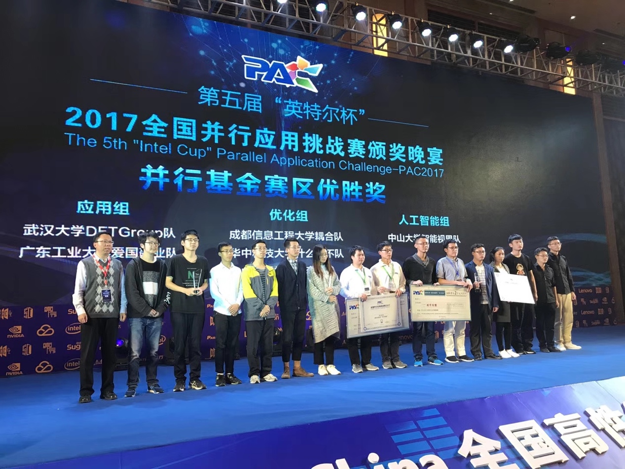 【本网讯】10月20日,第五届“英特尔杯”全国并行应用挑战赛(简称PAC)决赛在安徽合肥举行。学校计算机学院两支队伍闯入优化组决赛,一支队伍晋级应用组决赛,与来自解放军信息工程大学、清华大学、上海交通大学、华中科技大学、深圳大学等多支强队同场竞技。最终,“耦合队”获得优化组并行基金赛区优胜奖。