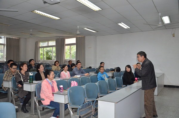 谢明元从课堂教学的准备与实施的角度阐释了如何成为一名合格的高校教师。她向新教师们详细介绍了课程教学理念与教学初步准备、课堂教学的设计和课堂教学的组织与实施,并借用大量教学案例充实专题讲座。