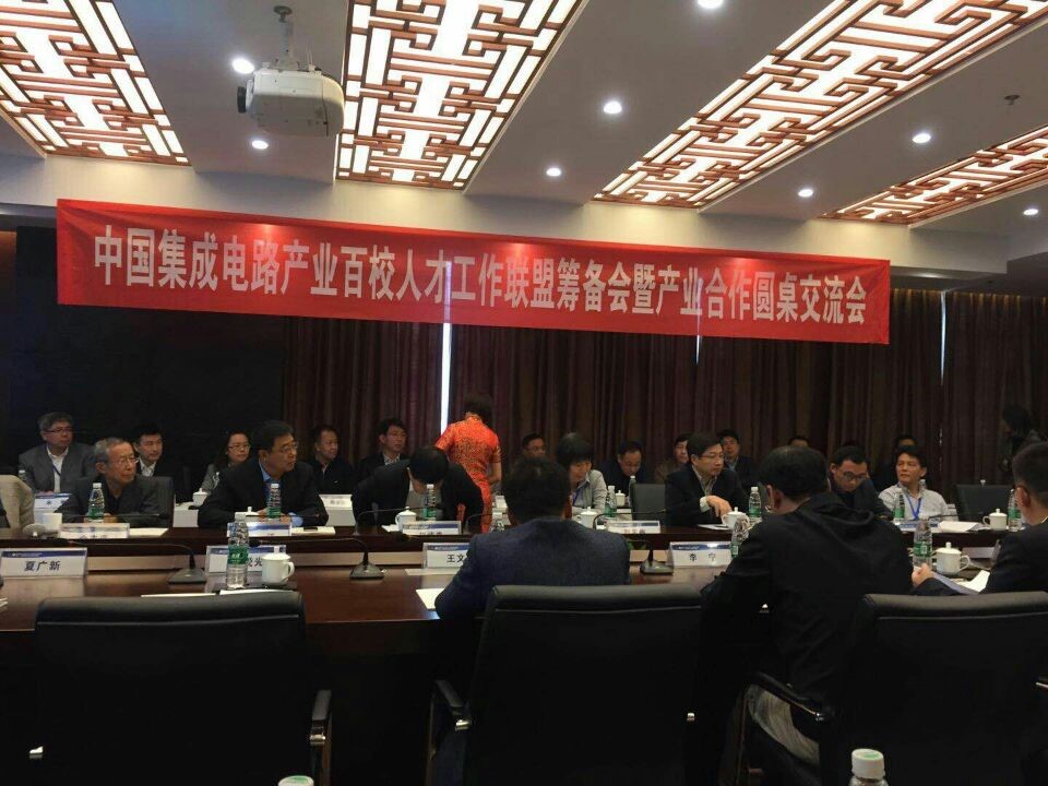 10月14日上午,马文英参加了“中国集成电路产业百校人才工作联盟筹备会暨产业合作圆桌交流会”。工信部电子信息司集成电路处处长任爱光,清华大学教授余志平、王志华,中国科学院微电子所副所长周玉梅,北京电子控股有限责任公司党委书记、总经理赵炳弟等代表发言,对筹建“中国集成电路产业百校人才联盟”提出了建议和意见。马文英在发言中提到,对联盟在人才培养、学生就业方面所能够发挥作用给予了很高的期望。