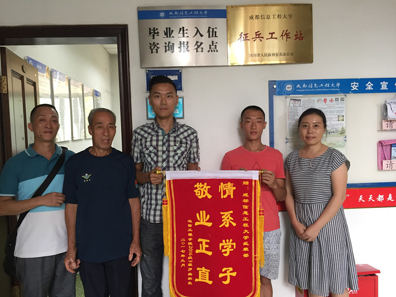 【本网讯】9月13日下午,祖孙三辈来到学校武装部办公室亲手将一面印有“情系学子 敬业正直”的锦旗递到了武装部老师的手上。老人十分激动的说,他是一名老兵,他代表全家感谢学校帮助他的孙子实现当兵的梦想。这个孩子就是伟德官网通信工程学院2016级通信3班的学生罗杰,今年入伍的新兵。