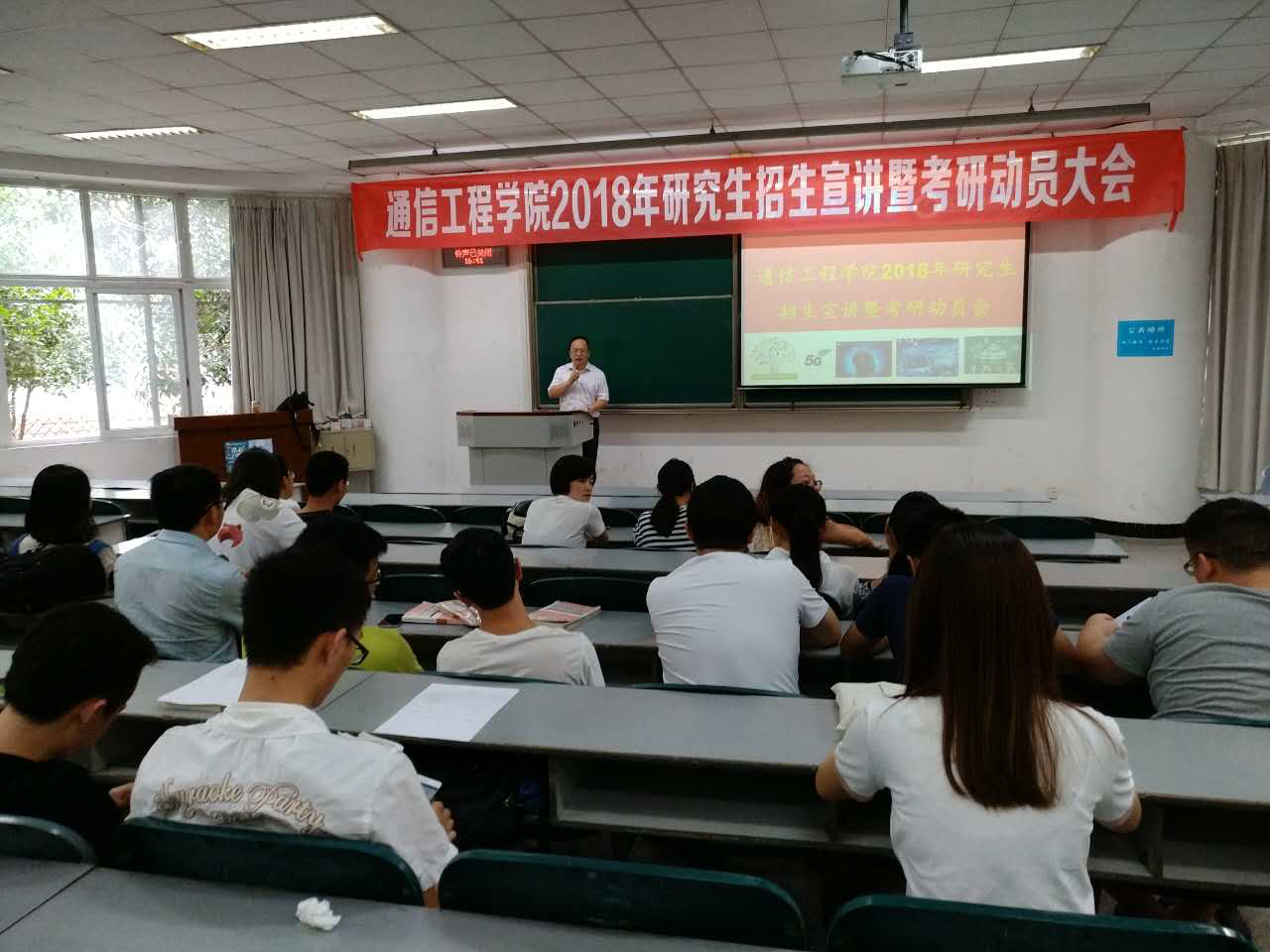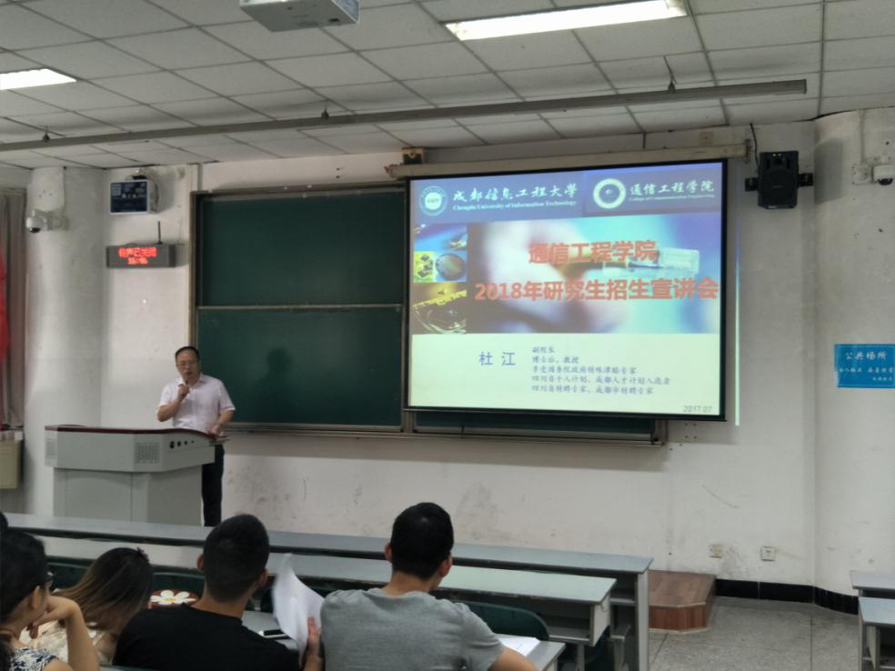 【本网讯】7月7日下午,通信工程学院在4112教室开展了研究生招生宣讲会及考研动员会,此次宣讲面向全校同学,以及通信工程学院全体2014级本科生和低年级研究生,由通信工程学院副院长杜江教授主讲。