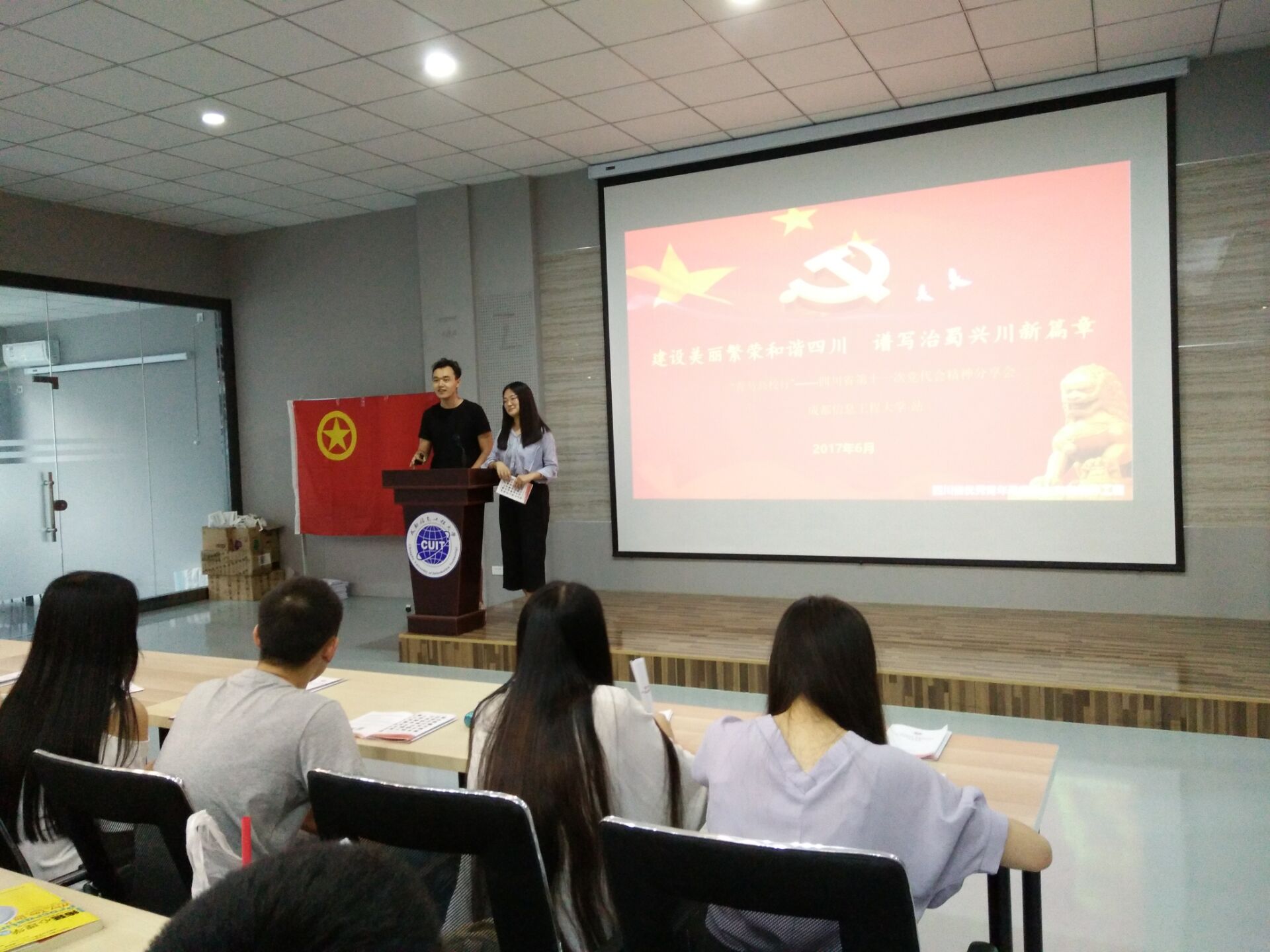 程思琪、金鑫对四川省第十一次党代会的大会主题进行了解读,讲解中统揽了治蜀兴川全局的重要指导思想,并对推动治蜀兴川再上新台阶的宏伟蓝图等九项纲要的重要意义进行深刻解读,做出“在全面建成小康社会决胜阶段再立新功,为谱写中国梦四川篇章而努力奋斗”的展望。让同学们深刻认识了大会的时代背景、党代会主题、党在过去五年奋斗历程,以及习近平总书记系列重要讲话精神和治国理政新理念新思想新战略。