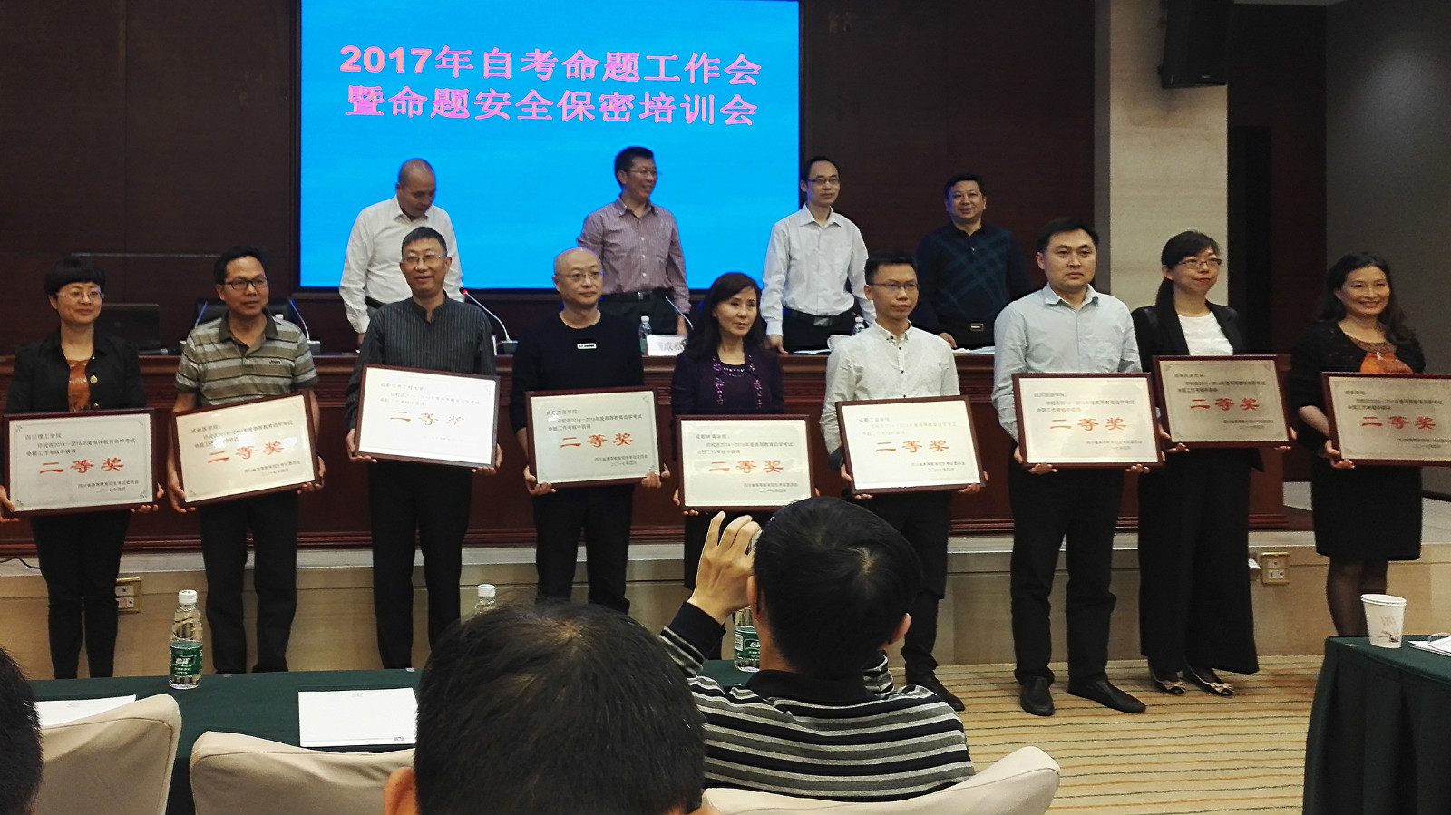 会上,省教育考试院副院长张刚同志总结了2014-2016年四川省自学考试命题工作。省教育厅副巡视员魏成松同志代表省招考委宣读了2014-2016年自考命题考核结果的通知。省教育考试院党委书记丁念友对所有命题工作者做出的杰出贡献表示感谢,并对今后命题工作做出了安排和部署。此外,与会者听取了省保密局宣教处处长梁炜同志所做的《常用保密法规讲解和管理务实》报告,从相关法律法规和违法违纪实例中进一步强化安全保密意识和能力。