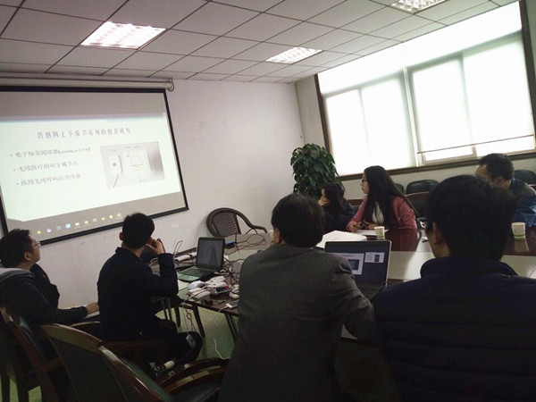 孙翔先在会上介绍了我方在无线传感网领域的研究成果和已有的实际应用案例。随后,由团队成员展示了无线体温监测系统,无线/无源呼叫系统和固定资产监测管理与数据分析系统。其中的重点“固定资产监测管理与数据分析系统”包括RFID静态识别和WSN动态监测二个部分:RFID静态识别部分将超高频的RFID标签作为资产的唯一标识,用户使用资产盘点设备就能够完成对资产的快速清查、盘点、转移、增加、报废等资产管理操作;WSN动态监测部分则使用WSN技术和传感器技术,实现实时监测用电资产的实际使用功率以及资产所处的环境状态,通过数据分析系统向用户实时动态的展示资产运行状态、位置信息和资产数据分析的结果。静态和动态两部分通过数据分析系统的有机结合,实现了对资产的全面、多维度、实时的管理效果。