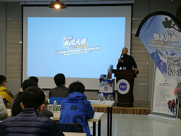 【本网讯】3月24日,学校青年志愿者协会在伟德官网创新创业俱乐部举办了“校园户外知识分享汇——华西都市报首席记者进校园”活动。活动特邀华西都市报首席记者、国家级登山健将刘建作为主讲人,和在场的听众分享了他传奇的登山经历以及经历思考的感悟。