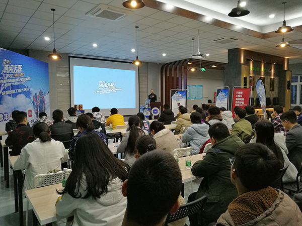 刘建针对大学生非常感兴趣的户外探险,提出了“计划、准备,再实施”的“户外出行三部曲”,详细的为大家介绍了在决定户外旅行是应该做的物质准备以及思想准备,并通过如怎么选择营地驻扎点等具体问题传授了大学生常用的户外旅行知识。刘建分享了他充满坎坷但精彩非凡的登山故事,并再次向听众们强调了“没有安全就没有一切”,在讲到攀登珠穆朗玛峰时,第一次知道不能上冲击顶峰时的失落,“失而复得”成功登顶的喜悦,与王石等伙伴在珠峰封顶的趣事。刘建侃侃而谈的登山经历,在听众面前浮现的是他登山时的一幅幅壮丽情景。