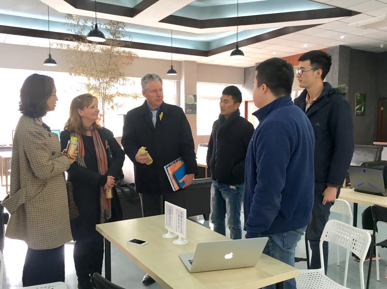 会上,段黔冰向来访客人表示热烈欢迎。陈敏介绍了伟德官网大学生创新创业项目、学分课程等基本情况,以及学生获得专利和受资助情况。宋波介绍了伟德官网大学科技园、成都研究院、成创空间的情况,并列举数个通过伟德官网平台孵化的企业成功案例,介绍了成创空间的运营模式和成果。Dr. Claire McGowan对伟德官网成创空间展现出浓厚的兴趣,就宋主任介绍的情况展开了进一步讨论。随后,Tony O’Brien介绍怀卡托理工学院在大学生创新创业方面开展工作情况,双方就合作方向和模式进行讨论,为后续合作奠定了基础。