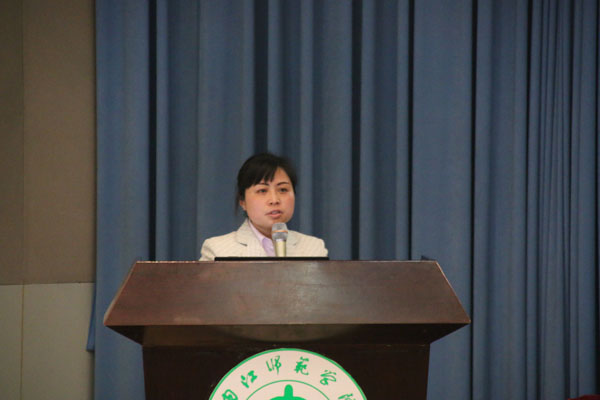 成都工业学院思政部教研室主任罗英教授向与会人员传达了国家教育部第36期全国高校“形势与政策”课骨干教师培训会精神以及专家报告的主要内容。