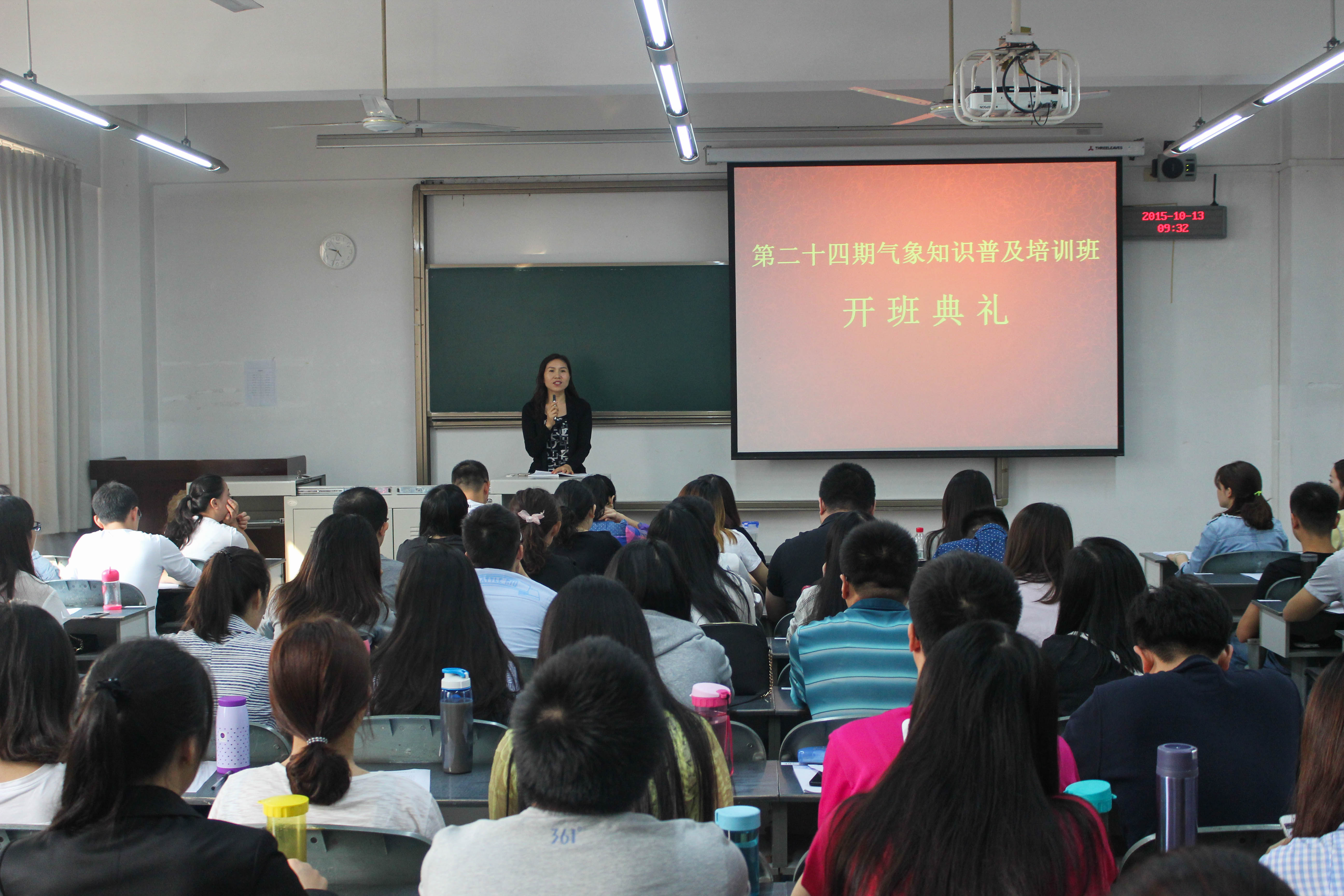 【本网讯】10月13日上午,中国气象局第24期气象知识普及培训班(文科)在学校航空港校区4309教室举行开班典礼。大气科学学院党总支书记张小红、培训班班主任吴云、曹怡和全体学员参加了开班典礼,开班典礼由吴云主持。