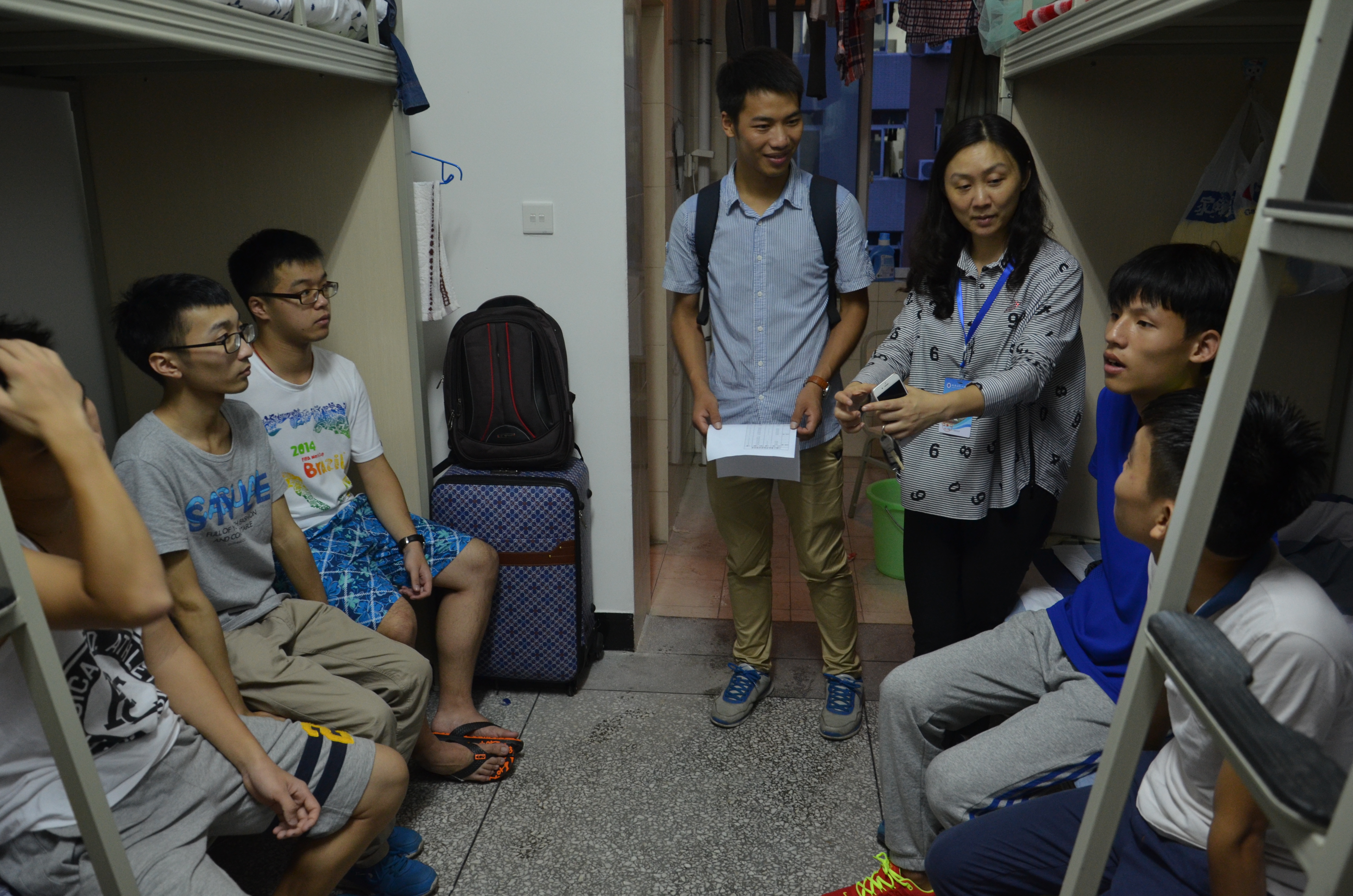 活动开始后,学院领导分为两个小组前往新生寝室慰问并指导相关工作。在院领导以及辅导员的亲切询问下,同学们都畅所欲言,说明了近期生活情况并表达对日后大学生活的向往。
