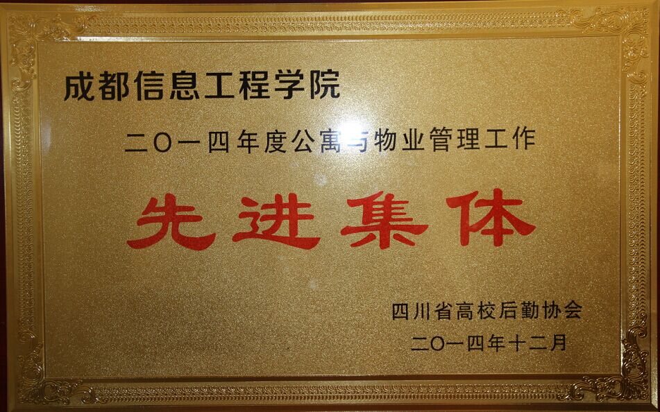 协会对2014年度先进集体及个人进行了表彰。我院后勤服务公司学生公寓管理中心荣获2014年度四川省高校学生公寓管理与物业管理工作“先进集体”称号,郭英姿、吴光烈同志获2014年四川省学生公寓管理与物业管理工作“先进个人”;饮食服务中心荣获2014年度四川省高校伙食工作 “先进集体”称号,胡昌学、刘畅同志获2014年度四川省高校伙食工作“先进个人”。