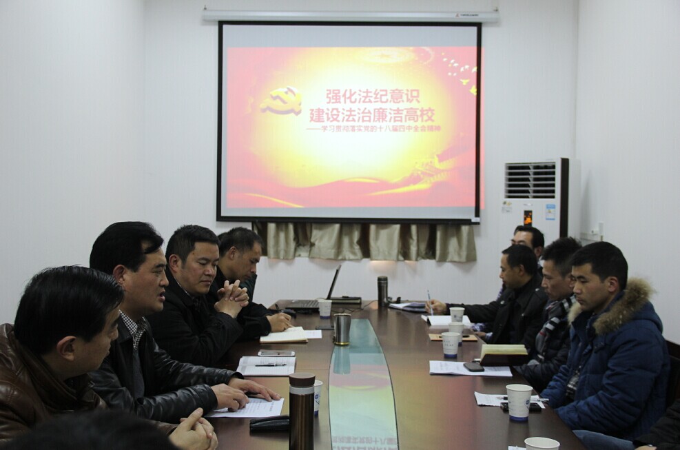 【本网讯】为深入贯彻十八届四中全会“依法治国”重要精神,落实党风廉政建设教育,构建阳光健康的后勤运行环境,12月15日,学院纪监审办公室主任刘立权为公司中层及以上干部作题为“强化法纪意识,建设法治廉洁高校”的党风廉政建设专题报告。