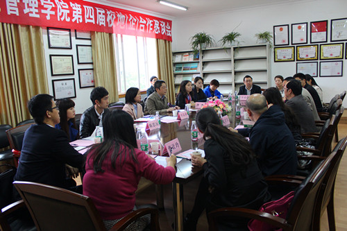 [本网讯]10月31日,管理学院第四届校地(企)合作恳谈会在龙泉校区举行。上海人才(西部)有限公司、万豪集团成都丽思卡尔顿酒店、洲际酒店集团、四川正信企业集团、移动工程公司等近二十家企业领导、人力资源负责人参加了会议。会议由管理学院党总支副书记杨勇主持。