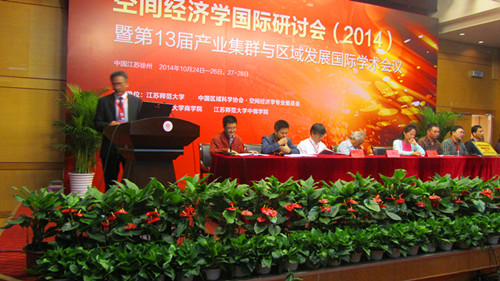 [本网讯]空间经济学国际研讨会(2014)暨第13届产业集群与区域发展国际学术会议,于10月24日至26日在江苏省徐州市江苏师范大学举行。此次大会由中国区域科学协会空间经济学专业委员会和江苏师范大学联合举办。商学院方杰教授带领区域经济学及产业经济学专业方向研究生参加了此次会议。