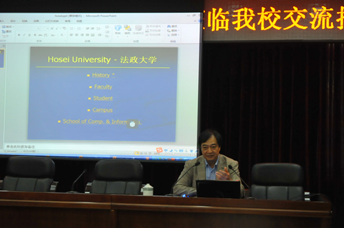 [本网讯]10月30日下午,日本法政大学马建华教授和台湾中央大学施国琛教授在行政楼第一会议室为广大师生作了主题为“Hyper-World, Big-X and Cyber-I”和“Motion Interpretation - Virtual Music Instrument as Examples”的学术报告。此次学术交流活动由计算机学院承办,由计算机学院院长何嘉主持。