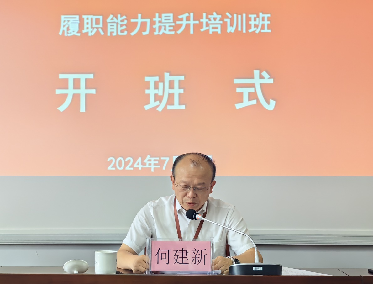 中层正职党性教育及履职能力提升培训班校长、党委副书记何建新作动员