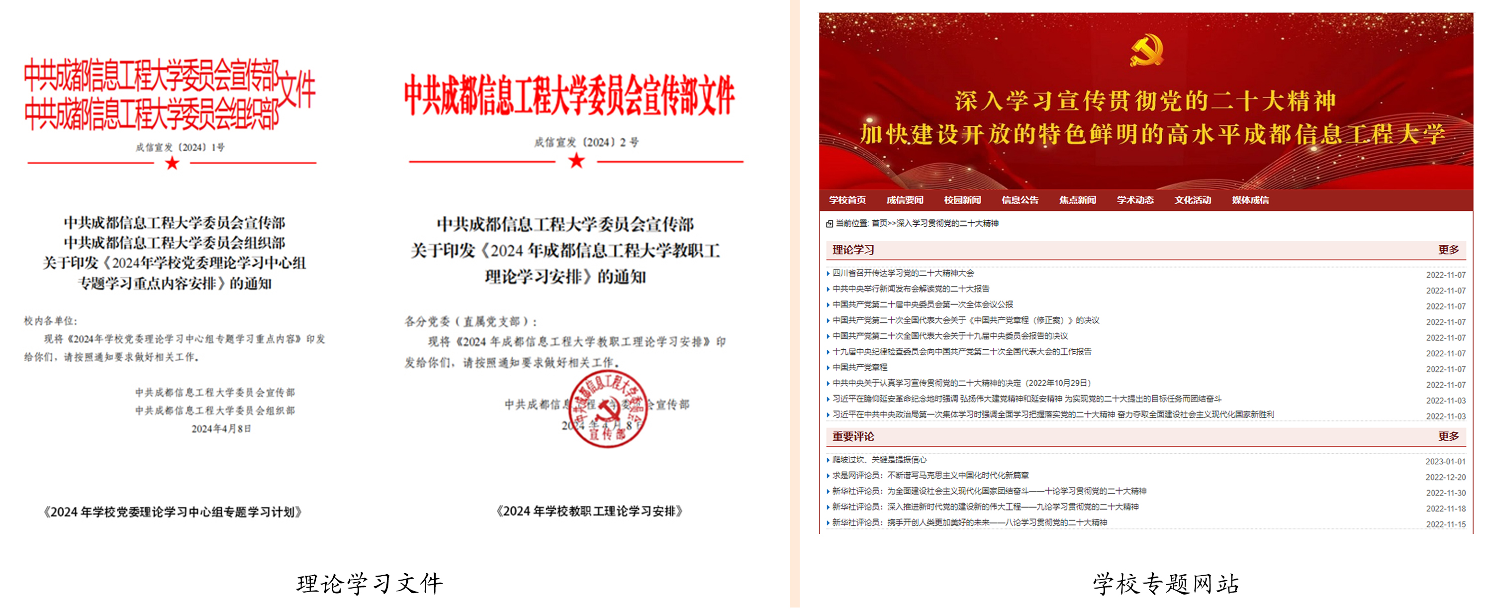 1.聚核心,提升宣传工作质效。突出主旋律、弘扬正能量,围绕学校中心工作,聚焦基层一线和教学科研实践,深入挖掘学校改革发展中涌现出来的先进人物、先进事迹,以典型力量凝聚人心,助力学校内涵建设和特色发展。学校官网增设党纪学习教育、青年党员说专题学习栏目,发布文章110余篇、20余次工作动态视频。部门撰写的重大活动新闻60余篇,审核发布新闻1100余篇。制作党的二十届三中全会、全国教育大会、省委十二届六次全会等学习内容的道旗240余幅、宣传海报70余张。