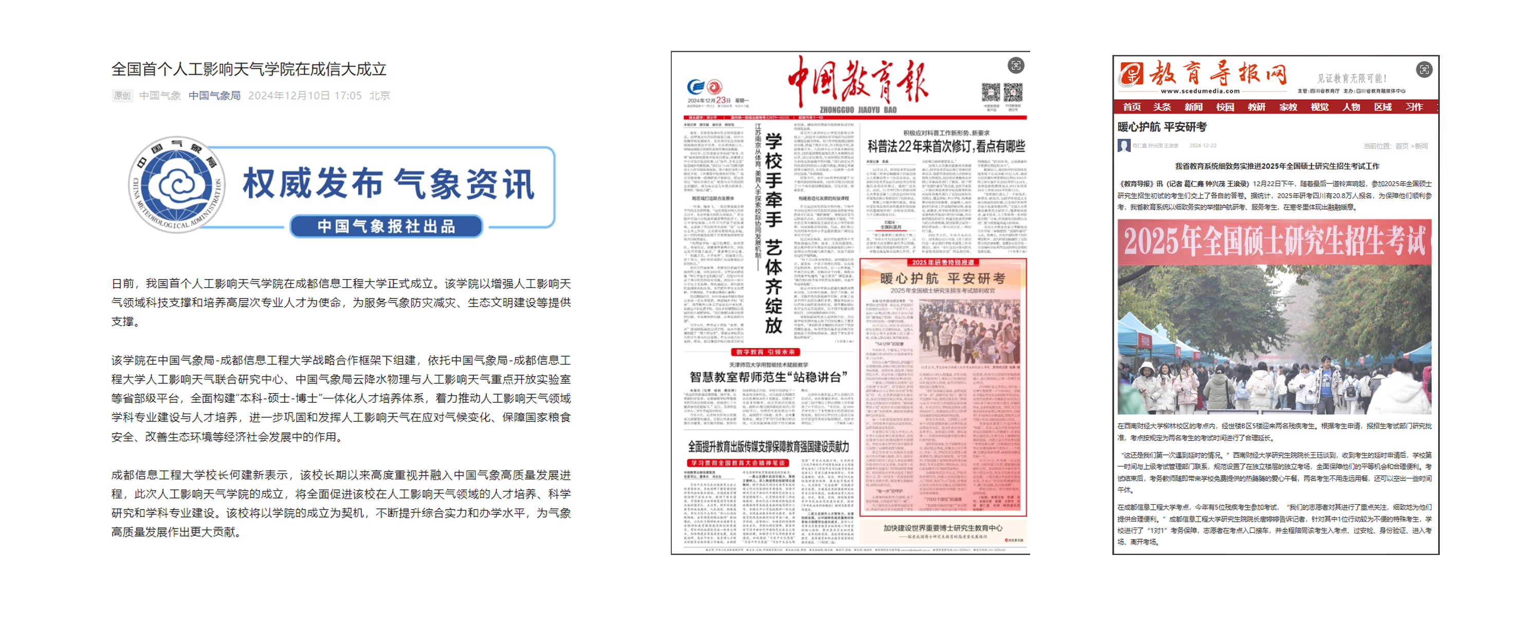 2.激活力,有效提高传播效能。积极对接主流媒体,持续做大媒体“朋友圈”,让传播实效强起来。人民网、新华网、中国青年报等主流媒体,全年刊发外宣稿件、视频报道110多篇(条),央视《晚间新闻》报道了第十六届“气象防灾减灾宣传志愿者中国行”启动仪式。分别在中国气象报、中国教育报和四川日报刊登博士点外宣报道3篇。在《中国教育报》《教育导报》、微言教育等媒体针对学校2025年研招考护航特殊考生“无忧研考”进行了特别报道。在《中国气象报》上报道了伟德官网为全国首家成立“人工影响天气学院”的学校。