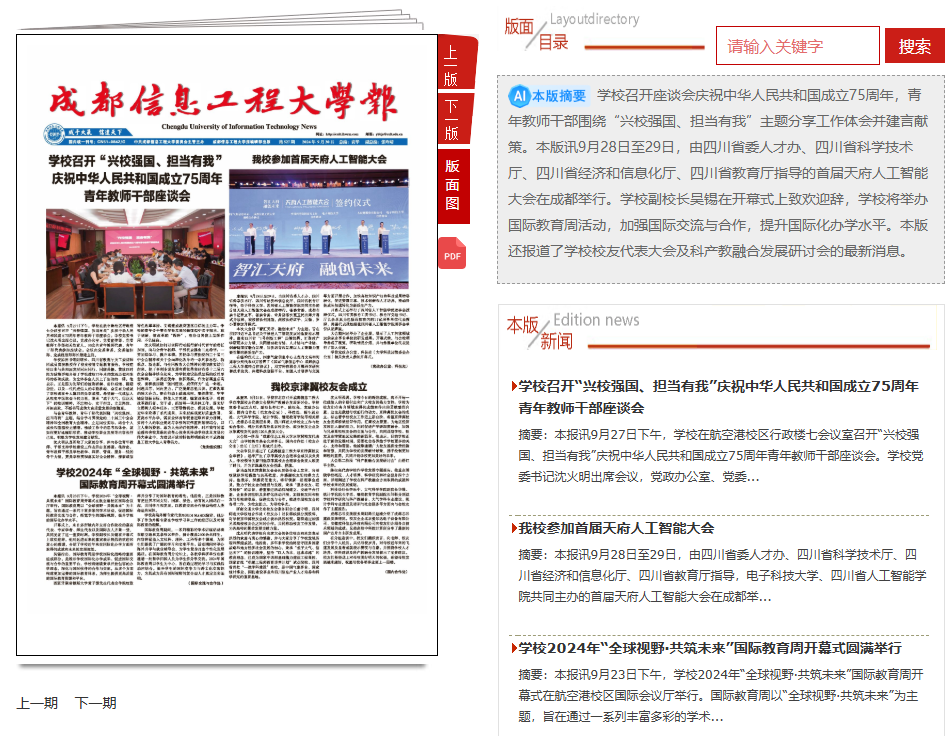 《bv伟德国际1946报》坚持守正创新、精编严审,全年刊发12期(520—531期),刊登稿件290余篇,围绕学习贯彻习近平新时代中国特色社会主义思想主题教育、全国两会、党纪学习教育、党的二十届三中全会、全国教育大会、宪法宣传教育、网络安全宣传周、师德师风、研考指南、就业导航、青春榜样等20个思想理论和成信文化特色专版专栏。