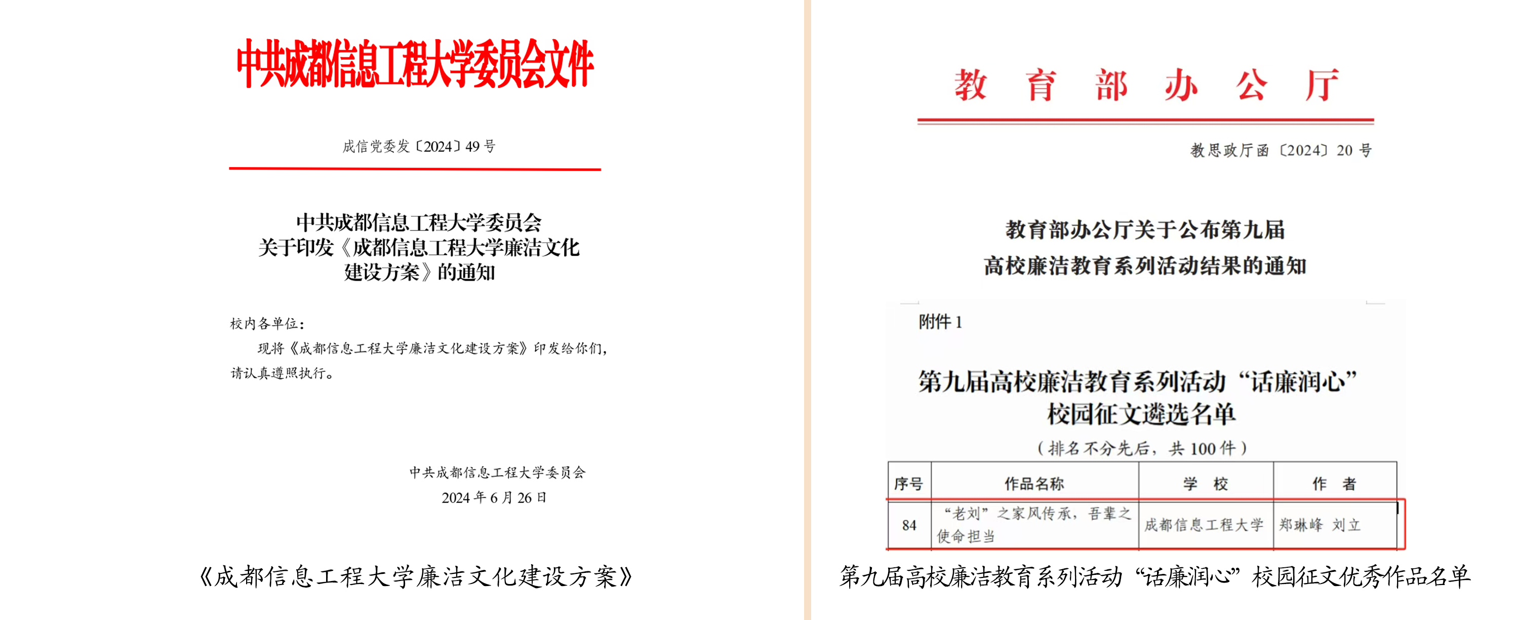 2.多点发力,推进校园文化专项建设。全面推进校园廉洁文化项目建设,联合纪委办公室发布《bv伟德国际1946廉洁文化建设方案》,积极培育校园文化建设精品项目,制作学校廉洁文化宣传片,构建和维护风清气正政治生态和教书育人环境。加强文化作品推优活动,学校师生团队原创文化音乐视频《炽热青春》,分别获得第七届四川大学生网络文化节微视频组四川省二等奖和校园歌曲组四川省三等奖,《大运“小青椒”工作日志》获动漫组四川省二等奖。宣传部指导并推荐的文章《“老刘”之家风传承,吾辈之使命担当》获教育部第九届高校廉洁教育系列活动“话廉润心”校园征文优秀作品,该作品将在央视网、中国大学生在线、中国教育发布等平台进行展播。