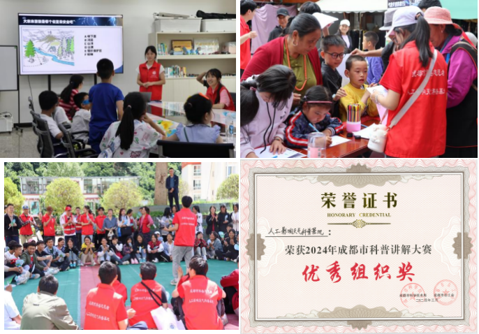 2024年,基地围绕气象防灾减灾、人工影响天气、生态保护、特色优势农牧业发展等方面,面对川渝青少年、大学生、公众等开展30余场多主题多形式科普宣传实践活动,借助新媒体平台打造丰富多彩的科普内容,让科普知识触手可及,满足多元化学习需求,让科普与教学深度融合。同时,基地以赛促教,在多场科普比赛中斩获奖项,提升了基地科普讲解能力。基地筹备“破雾前行”科普剧,入选第七届全国科学实验展演汇演,将科学实验搬上舞台,将高校科研成果科普化,创新了科普方式,进一步拓展创新人才培养新模式。