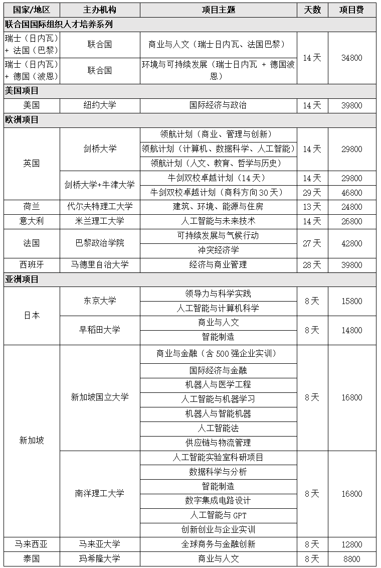 详细内容:以上项目详情请扫码获取项目简章,课程时间及项目收获等以简章为准。包含签注、住宿等各细节见简章。