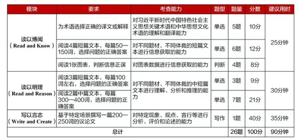本年度英语写作、阅读大赛升级为国际传播综合能力赛。赛题涵盖习近平新时代中国特色社会主义思想核心内容,涉及经济建设、政治建设、文化建设、社会建设和生态文明建设等领域的重要话题,部分赛题素材选自《习近平谈治国理政》第一卷、第二卷、第三卷、第四卷和党的二十大报告等。考查形式包括阅读、写作、翻译、演讲等。