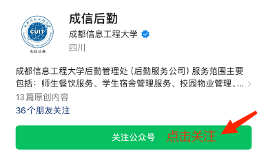 第一步:关注“成信后勤”微信公众号