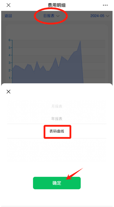 第六步:特增表码曲线功能,点击“日报表”处切换按钮,选择表码曲线,将能了解宿舍用电状态,时间精确到“小时”