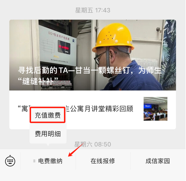 电费余额分别为10元、5元、3元时,系统会推送账单通知(需关注“成信后勤”微信公众号并绑定公寓房间号)。