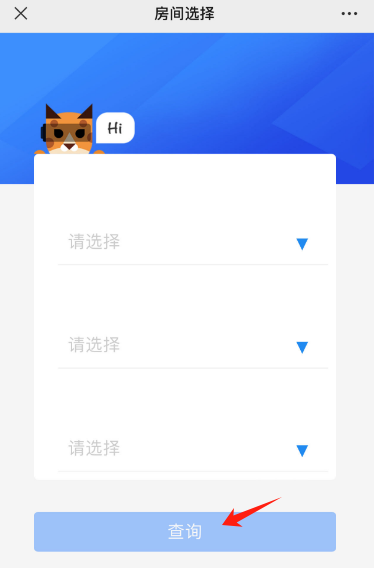第四步:进入房间选择界面,选择要缴纳电费的楼栋、楼层、房间号(请仔细确认填写是否正确!),点击查询。