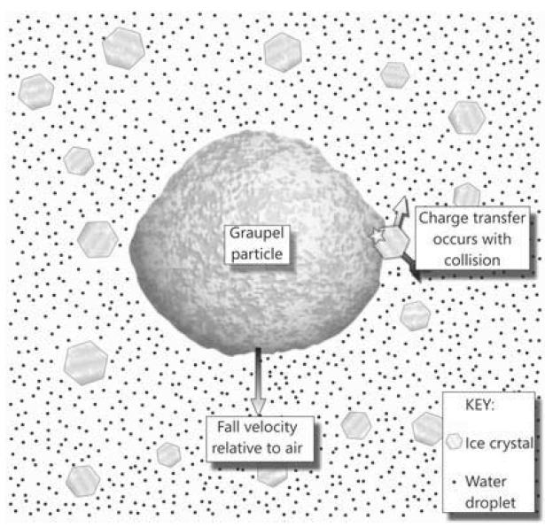 【本网讯】闪电是自然界常见的天气现象,最初,人们赋予其神话性质,解释了闪电起始源于神仙、法器。两百多年前,Benjamin Franklin证明了云内“lightning”和“electrical discharge”是物理同源,并测得了云电荷极性。随后学界一直试图寻找云内为什么会起电的物理机制。从20世纪初期开始,自由离子捕获机制、对流起电机制、感应起电机制和非感应起电机制等起电理论相继被提出并在学界内进行了激烈讨论。截至目前,大量实验室研究和外场观测试验研究表明在一定的温度和过冷却水存在的环境中,由霰和冰晶粒子发生的碰撞回弹过程会导致霰和冰晶粒子带不同极性电荷,这种非感应起电机制是现在学界内最为认可的云内起电机制(图1)。霰粒子的存在也被认为是云内闪电起始的关键信号。然而,对流云内霰粒子的存在往往表现为云内闪电起始的必要非充分条件,这是为什么?是否与霰的量级(影响有限空间内非感应起电机制中的碰撞效率)或凇附程度(关联潜热的释放,从云内热动力角度影响起电效率)有关?这二者是否可以被量化讨论?