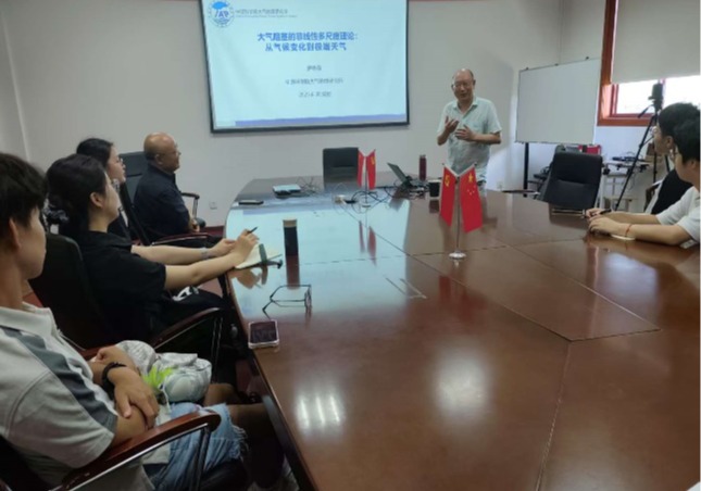 【本网讯】6月30日上午,中国科学院大气物理研究所二级研究员段晚锁和罗德海在气象楼310会议室,分别作题为《集合预报新理论、新方法及其应用》和《大气阻塞的非线性多尺度理论:从气候变化到极端天气》的学术报告。本次报告由大气科学学院李扬副教授主持,巩远发教授等部分师生参加了现场报告和学术交流。
