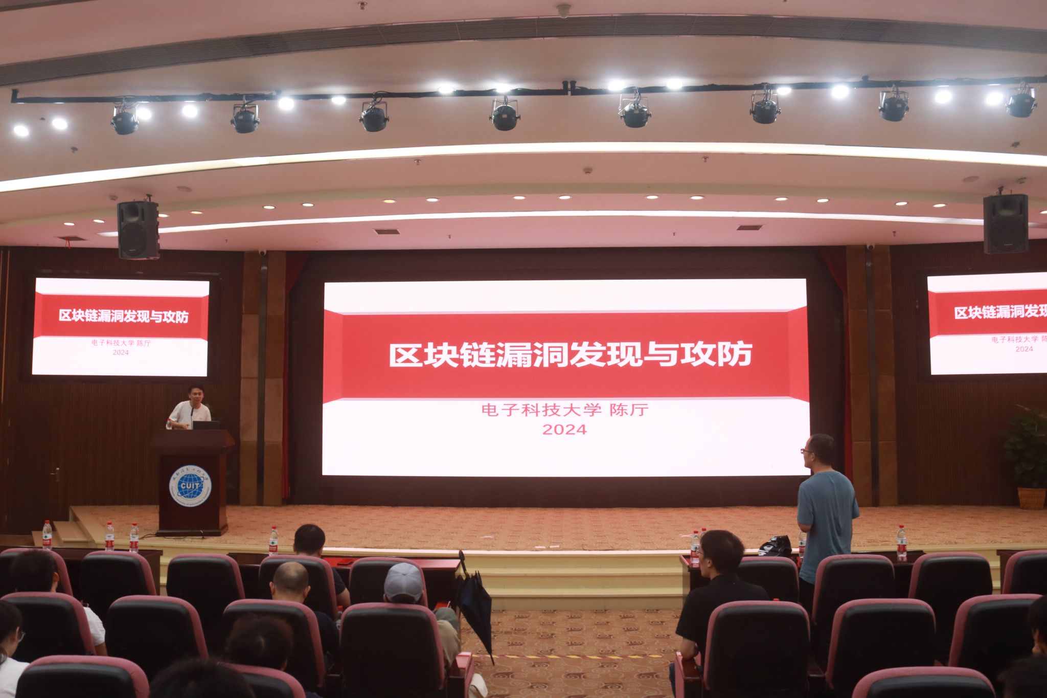 【本网讯】6月3日晚,电子科技大学计算机学院教授、博士生导师陈厅应邀在伟德官网航空港校区国际会议厅作了题为《区块链漏洞发现与攻防》的精彩学术报告,区块链产业学院部分教师、全体研究生及2022级、2023级本科生共200多人聆听此次报告。报告由学院党委书记林细俤主持。